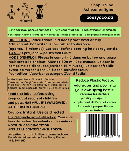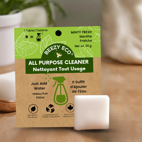Beezy Eco’s All Purpose Cleaner is a sustainable, eco-friendly and plastic free cleaning solution for your entire home. These small tablets contain all natural ingredients and dissolve to make 500ml of an eco-friendly cleaner that Works!